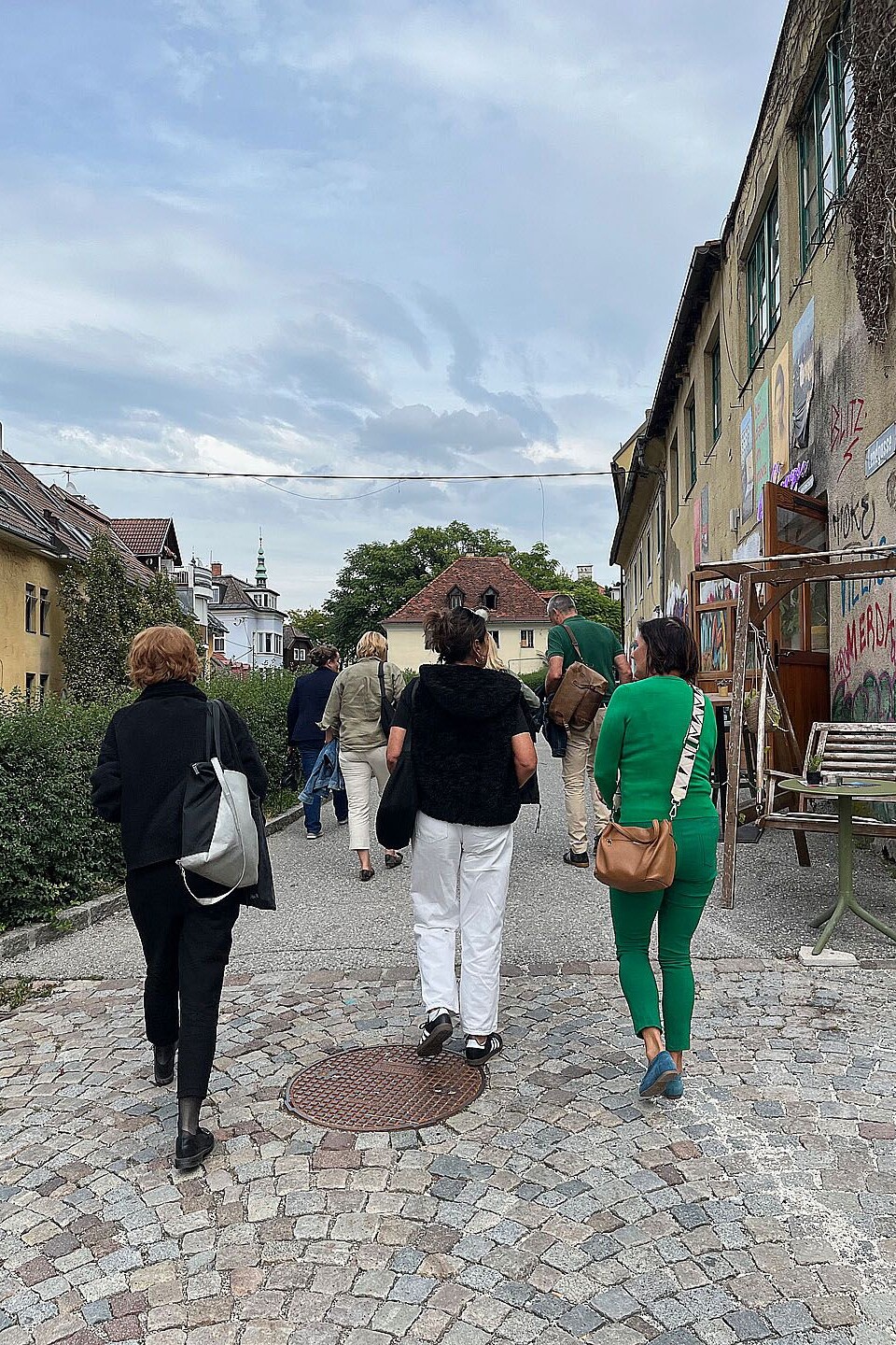 Im September 2025 führte uns Stadtrat Max Habenicht, Stadtratsbüromitarbeiterin Edith Bürgern und Nicole Holzbauer vom Wirtschaftsservice Klagenfurt durch die Co-Working Spaces im Klagenfurter Lendviertel. Im Hafen 11, dem Co-Wo Space Hafenstadt Doc 7 und der Anlegegestelle teilen sich menschen aus unterschiedlichen Branchen – meist aber aus den Creative Industries – einen Arbeitsbereich. Die Spaces bieten sowohl individuelle Arbeitsbereiche als auch Seminarräume. Mitten in der neu belebten Lendgegend kann man sich hier einmieten. Abseits der Lend kann man außerdem Arbeitsräume für die gemeinschaftliche Nutzung im Maker Space oder dem Business Campus Ehrenhause finden. Klagenfurt bietet somit viel Raum für die Entfaltung von Entrepreneurship und Kreativität.