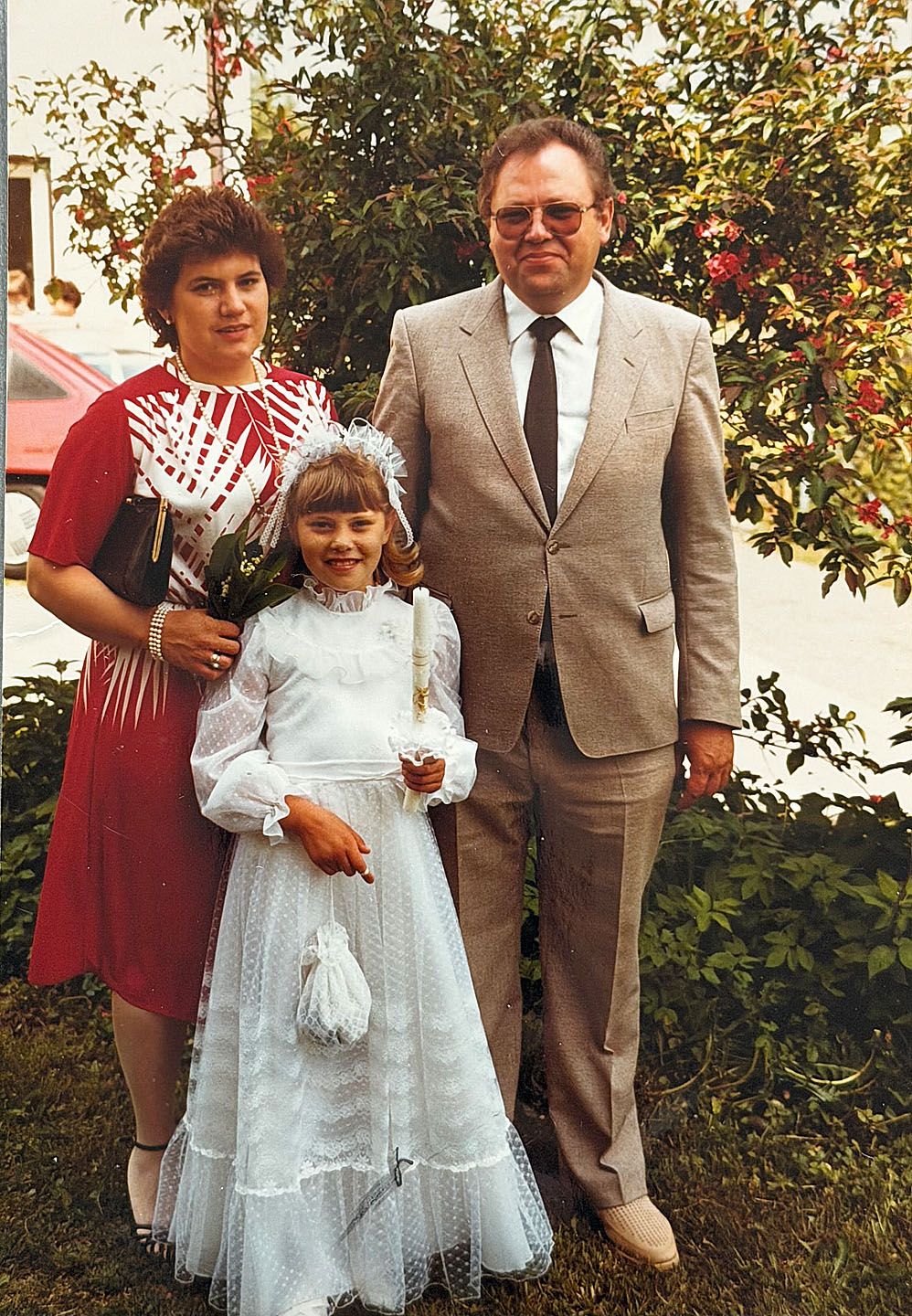 Ich bin geboren am 11. Juli 1977 in Klagenfurt, aufgewachsen im Rosental in Suetschach (slowenisch Sveče). Ich bin in eine Großfamilie hineingeboren, wenn man das so sagen kann, und hab mich mit vier Monaten gleich fast wieder verabschiedet, weil ich einen ganz schlimmen Keuchhusten hatte. Ich habe das immer verdrängt, meine Mama hat mir das vor kurzem wieder erzählt. Unser Kinderarzt hat fast seinen Urlaub abgesagt wegen mir, weil das so schlimm war. Er hat gesagt: „Nicht ins Krankenhaus, weil dort stirbt sie.“ Meine Eltern haben mich wochenlang gepflegt, ich hab immer in ihrer Mitte geschlafen, war keine Sekunde unbeaufsichtigt. So bin ich einmal gestartet ins Leben. Nach der Krankheit hab ich sehr viel geschlafen und nie geweint – alle haben mich immer angetippt, ob ich eh noch lebe – und blass war ich! „Die ist ja durchsichtig“, haben sie gesagt. Das hat sich dann aber schlagartig geändert.