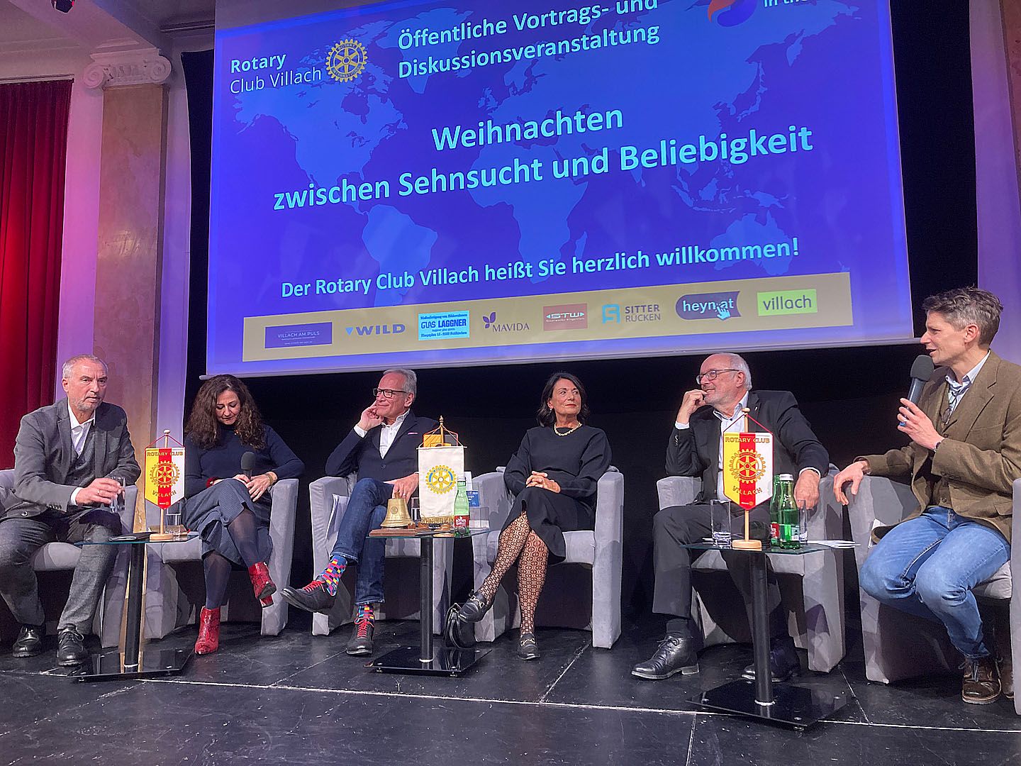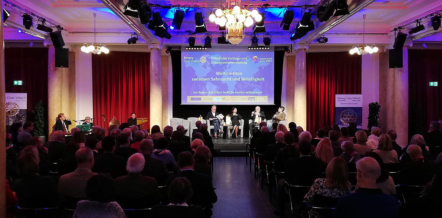 Der Rotary Club Villach lud am 4. Dezember 2023 Martin Bünker, Ute Liepold, Arnold Mettnitzer, Nadja Kayali, Richard Oswald zu einer Podiumsdiskussion in den Villacher Bambersaal ein. Mit der Frage “Wurde Maria überhaupt gefragt?” nahm Ute Liepold vor allem die Rolle der Frauen im Rahmen der angeblich besinnlichen Feierlichkeiten kritisch ins Visier.
