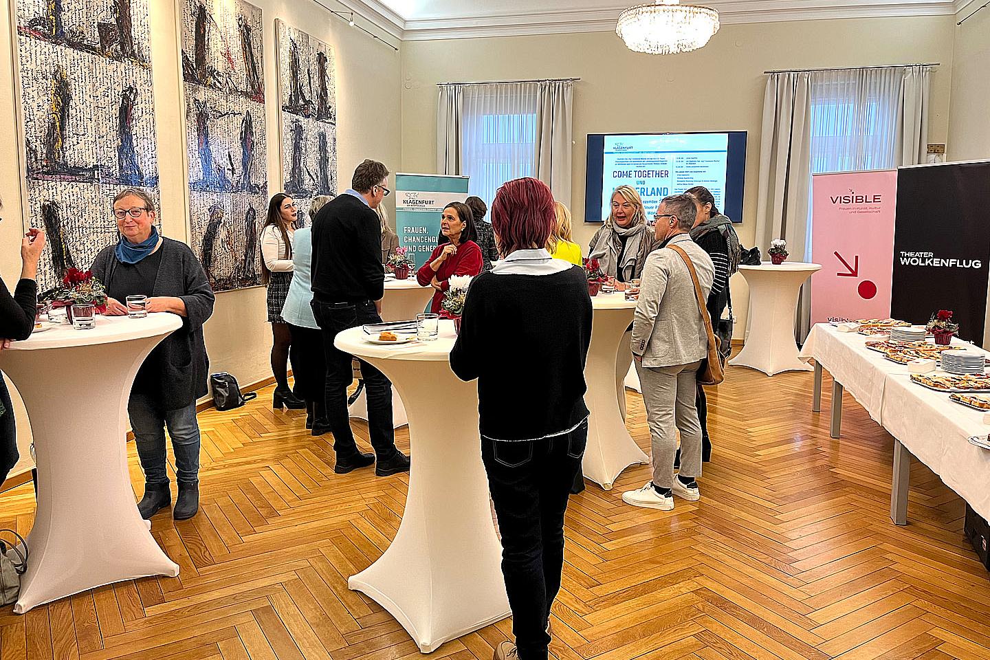 Vor der Präsentation gab es für das Publikum die Möglichkeit für ein Come Together mit Stadträtin Dipl. Ing. Constance Mochar (Referate: Stadtentwicklung, Verkehrsplanung, Frauen, Familie und Jugend).