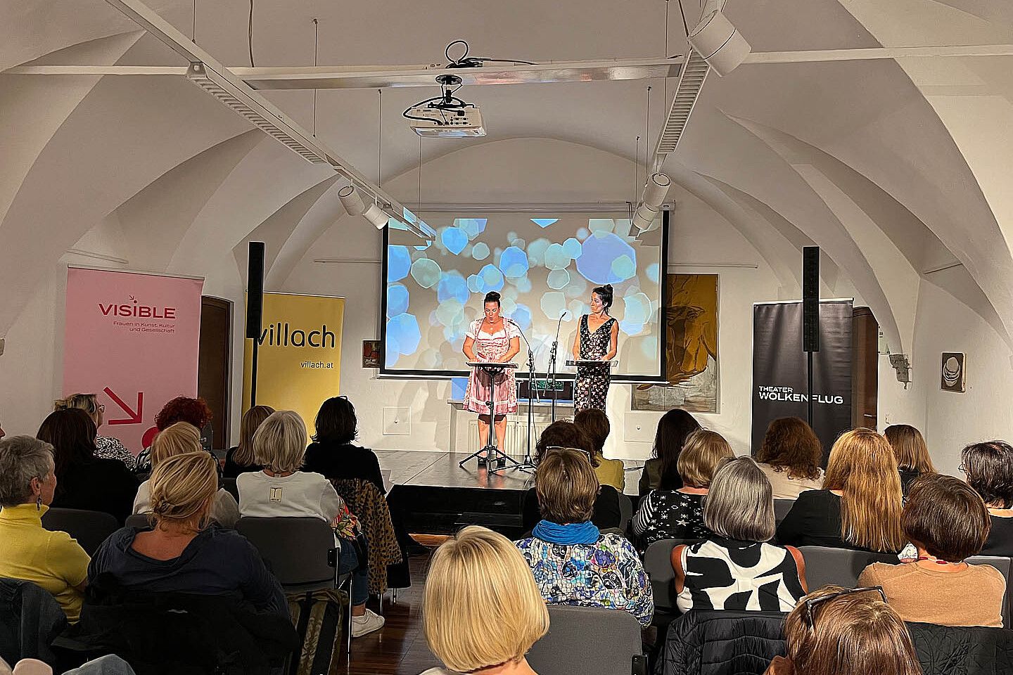 Anlässlich der Nationalratswahl und der weltweit besorgniserregenden politischen Entwicklung hin zur vermehrten Infragestellung und Beschneidung von Frauenrechten lud Visible am Montag, den 23. September 2024 zu einem Diskussionsabend mit szenischer Lesung ins Dinzlschloss Villach ein.